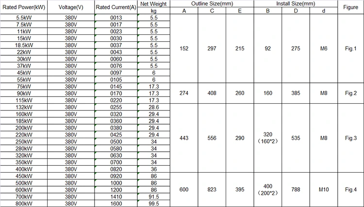 ຂະຫນາດ, ນ້ໍາຫນັກ, ແລະປະຈຸບັນຂອງ 380V